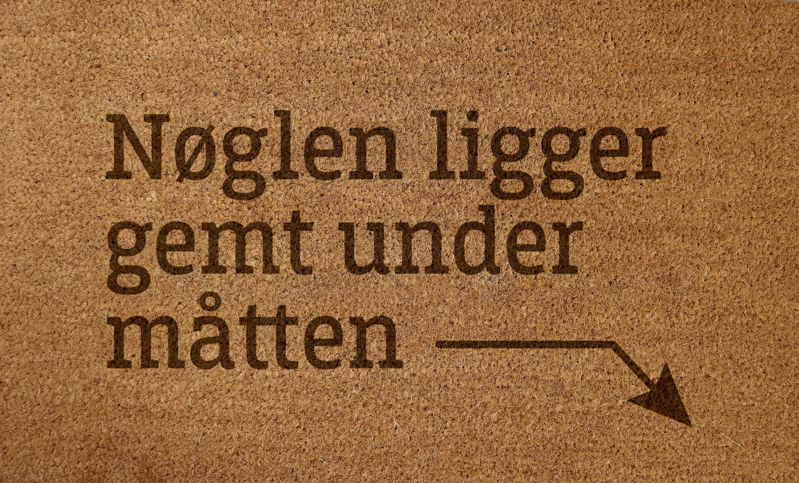 | Tekst | Hold dig på måtten, Nøglen ligger under måtten, Stil skoene her, Tør skoene af i mig, Vi støtter byens hold, Her bestemmer katten, Disclaimer: Her bruger vi rigeligt smør!, Måtte du være velkommen her, Jehovas vidner, Dont worry Be happy, Farfars måtte, Sko og wokeisme efterlades udenfor, Kære svigermor…, Rygning forbudt |